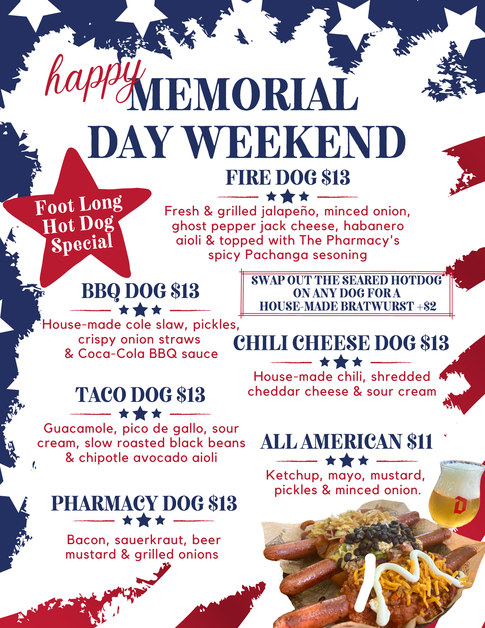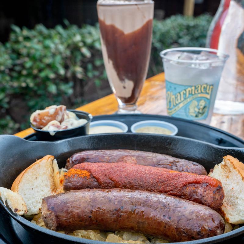 At The Pharmacy, we take great pride in our passion for the art of made-from-scratch. We pile juicy burgers made with fresh, locally sourced, beef onto our signature buns made just for us by Frothy Monkey Bakery. All of our wursts are hand ground, stuffed and smoked in house over TN White Oak. No wurst or burger is complete without one of our 10+ housemade sauces! We bring the nostalgia with our soda shop making handmade sodas using our signature syrup recipes featuring 100% pure cane sugar & no caffeine, preservatives, artificial colors or corn syrup. Our selection of international & craft brews is meticulously selected to perfectly complement your meal. You won't find your run-of-the-mill domestics here but you'll be sure to find something to that speaks to your pallet & will have you ordering a second round! Swing by & get a taste of just what the doctor ordered!