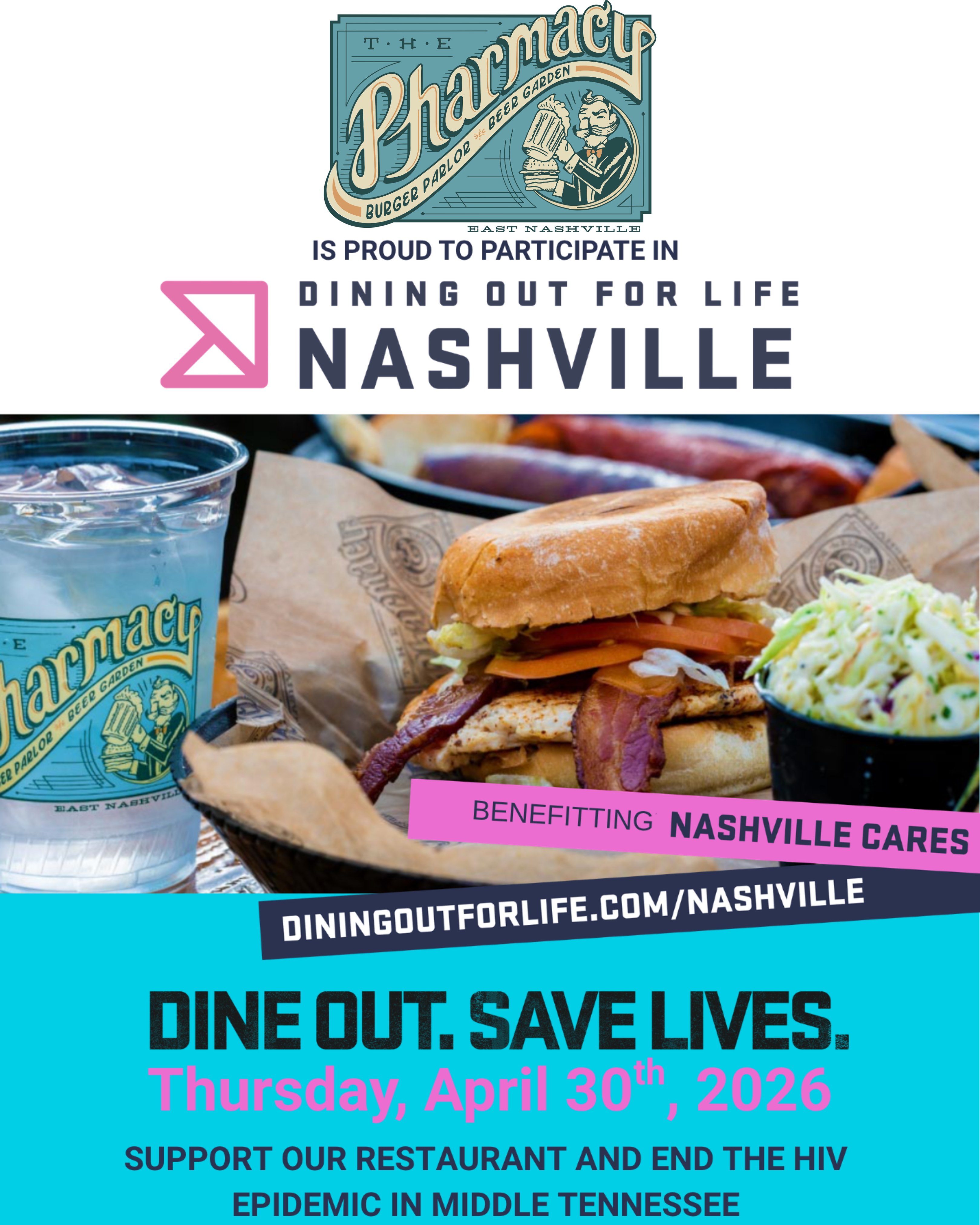 🍽️ Dine Out. Give Back. Make a Difference! 🌟 April 30th we'll be donating 25% of all sales directly to Nashville CARES to help end the HIV epidemic in Middle TN!